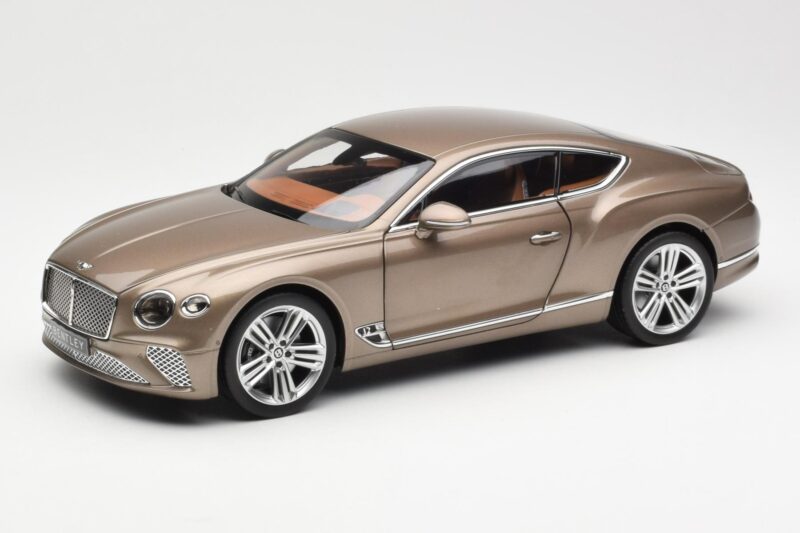 The Bentley Continental GT Dark Cashmere Metallic Norev 1:18 is crafted from Metall. Die-cast zinc alloy body with detailed plastic parts, rubber tires, and high-quality paint finish. Die-cast models are known for their weight, durability, and realistic feel.