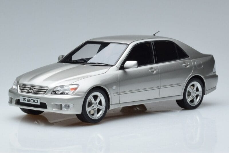 A 1:18 scale model measures approximately 25-28 cm (approximately 10-11 inches). The Lexus IS200 XE10 Silber Otto 1:18 is perfect for display in a glass cabinet or on a shelf.