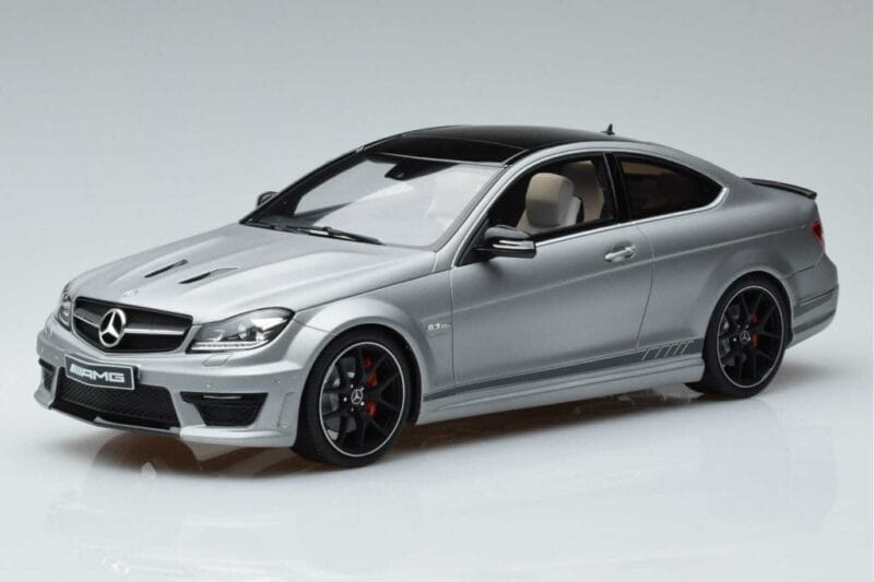 A 1:18 scale model measures approximately 25–28 cm (ca. 10–11 Zoll). The Mercedes C63 AMG Edition 507 C204 GT Spirit 1:18 is perfect for display in a glass cabinet or on a shelf.
