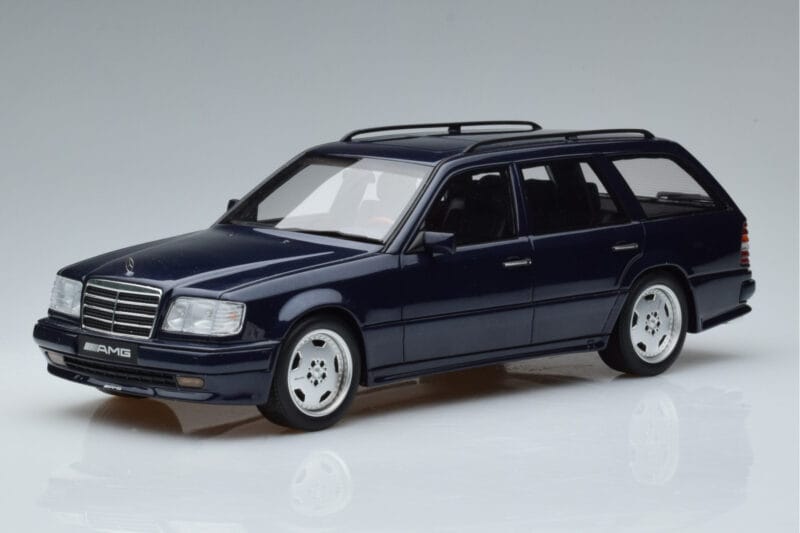 A 1:18 scale model measures approximately 25-28 cm (approximately 10-11 inches). The Mercedes E36 AMG S124 Blau Otto 1:18 is perfect for display in a glass cabinet or on a shelf.