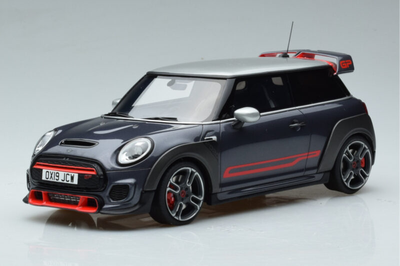 A 1:18 scale model measures approximately 25-28 cm (approximately 10-11 inches). The Mini John Cooper Works GP F56 Grau Otto 1:18 is perfect for display in a glass cabinet or on a shelf.