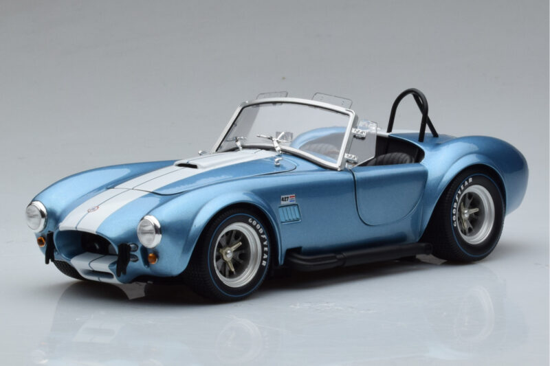 The Shelby Cobra 427 S/C Hellblau Kyosho 1:18 is crafted from Metall. Die-cast zinc alloy body with detailed plastic parts, rubber tires, and high-quality paint finish. Die-cast models are known for their weight, durability, and realistic feel.