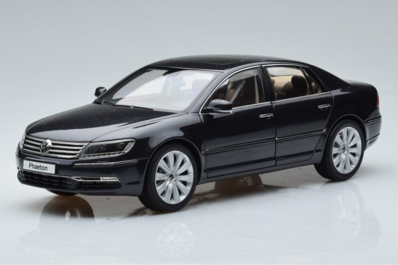 The Volkswagen Phaeton V6 Mazeppa Grau Kyosho 1:18 is crafted from Metall. Die-cast zinc alloy body with detailed plastic parts, rubber tires, and high-quality paint finish. Die-cast models are known for their weight, durability, and realistic feel.